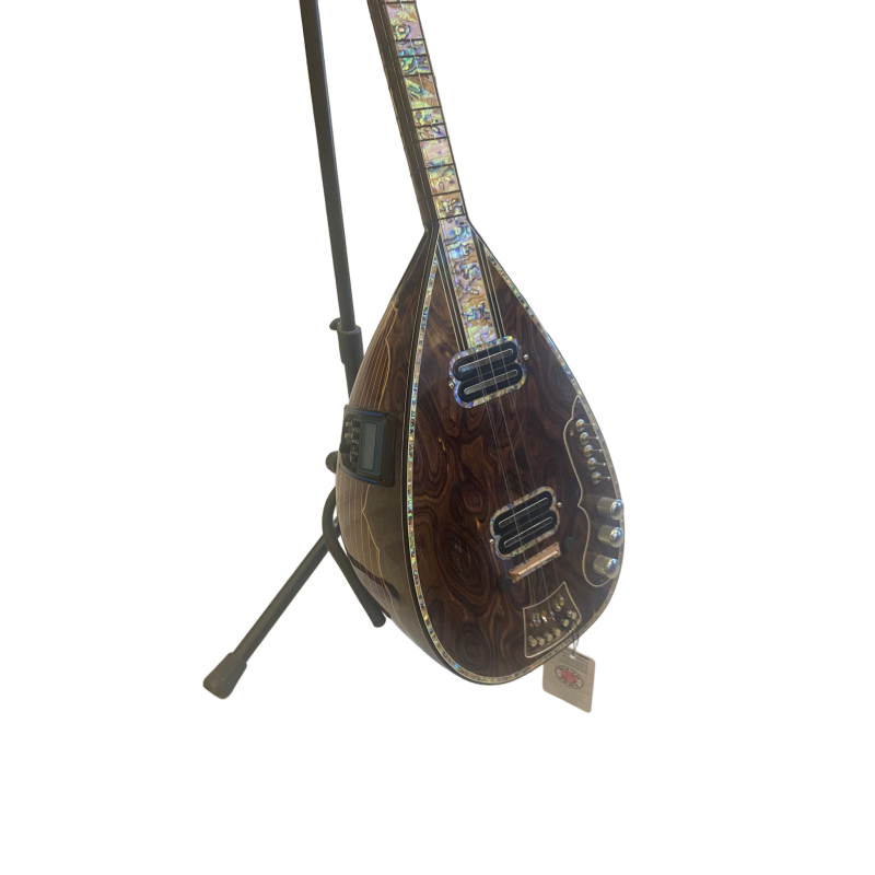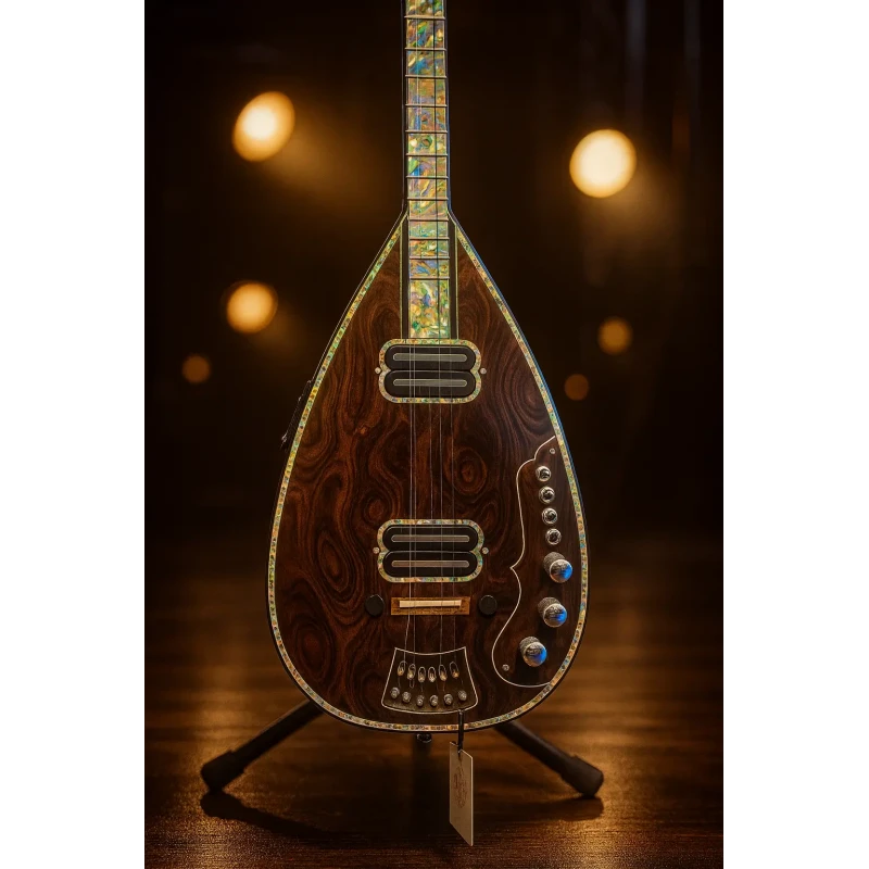 Sedef (abalone) kakmalarla zenginleştirilen ardıç gövde ve modern elektronik birleşimi: Elektro Fişmen Bağlama, sahnede parlayan netlik ve stüdyoda temiz kayıt kalitesi sunar. Çift manyetik düzeni, güçlü ve gürültüsüz sinyal üretirken gövde üzerindeki çoklu kontrol düğmeleri, repertuvar geçişlerinde hızlı ton ayarı sağlar. El işçiliği detaylar, enstrümana benzersiz bir görünüm ve uzun ömür kazandırır.